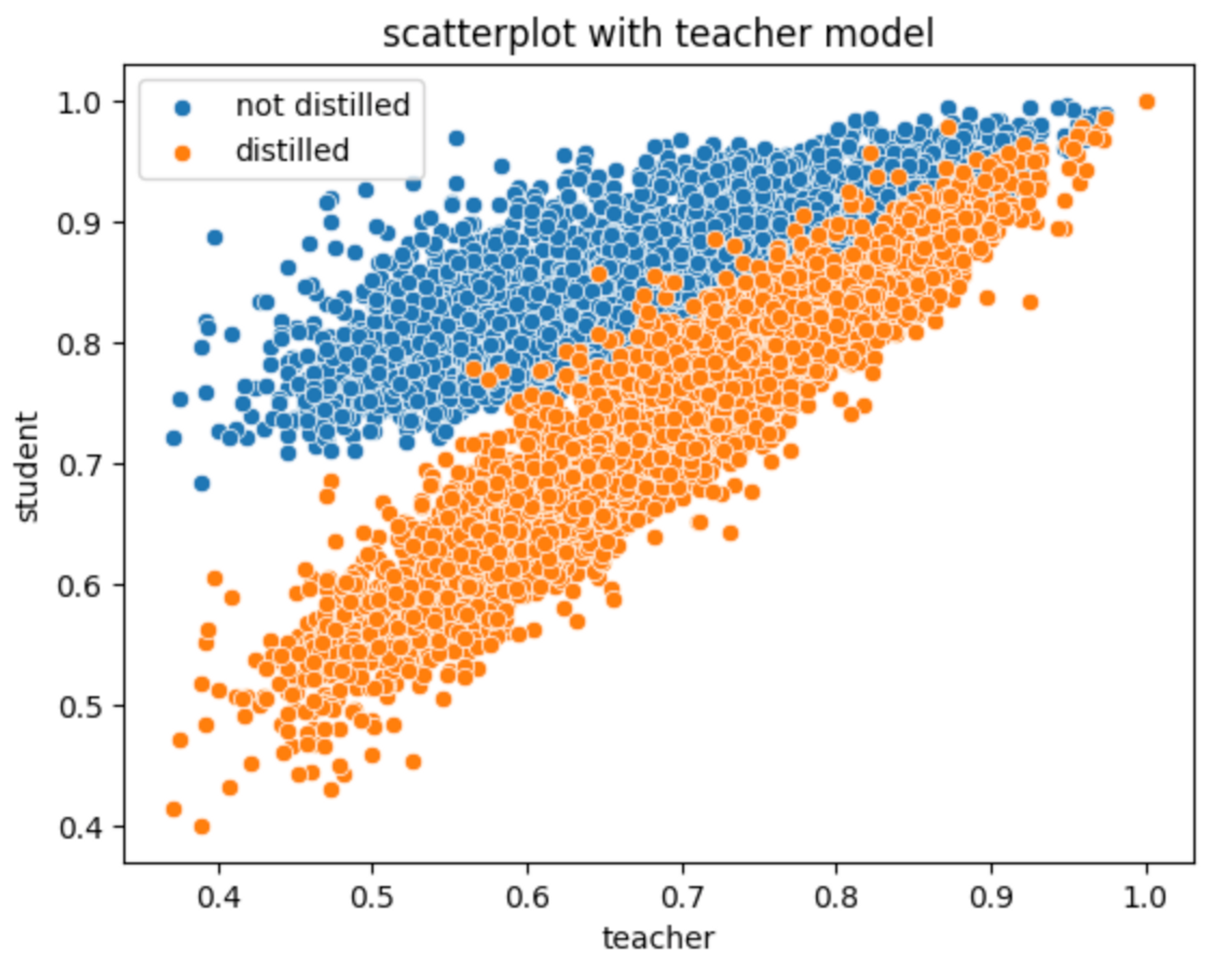 - scatterplot 상에서도 distillation한 후에 teacher의 BERTScore를 더 잘 따라하는 것을 확인할 수 있다.